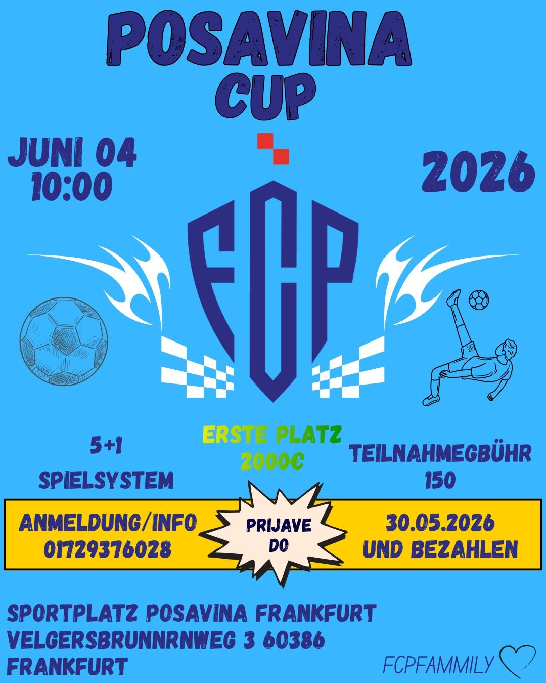 Wie bereits angekündigt, findet der Posavina Cup 2026 am 04.06.2026 auf unserem Sportplatz statt. Turnierbeginn ist um 10:00 Uhr.